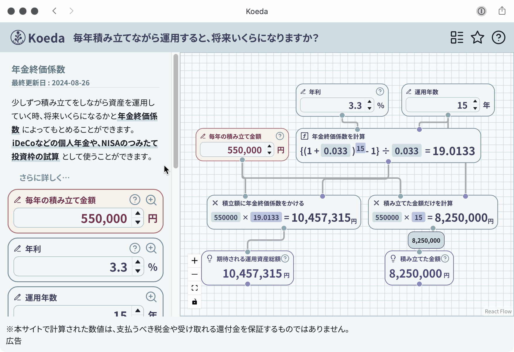 こういった疑問は、計算の手順が全て公開されていることによって解決できると考えました。そこから、このkoedaというWebサイトの仕組みが生まれています。